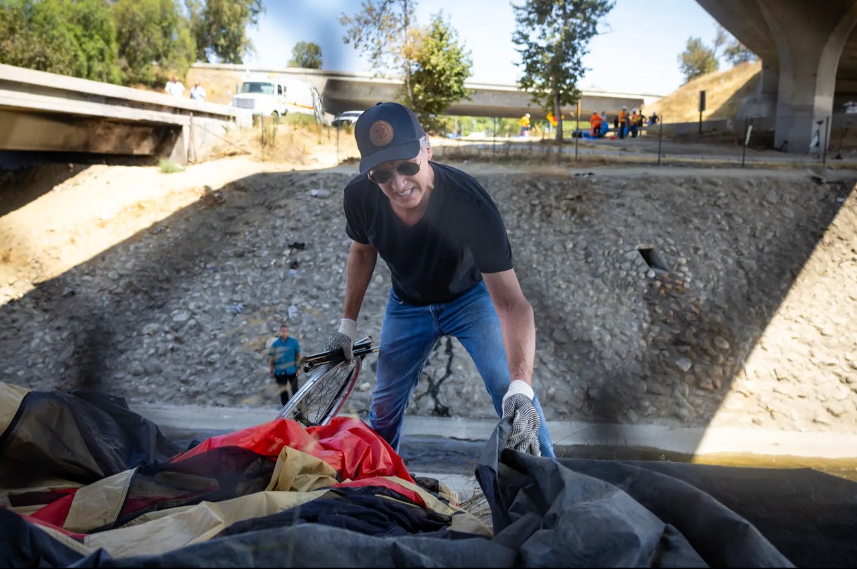 And what do you call forcibly yanking houseless people out of their tents and confiscating everything they own? What do you call the criminalization of homelessness? A Democratic darling, California Governor Gavin Newsom recently took to the streets to rob houseless folks of their only belongings and he had the gall to drag a camera crew along to memorialize his “valiant” acts.